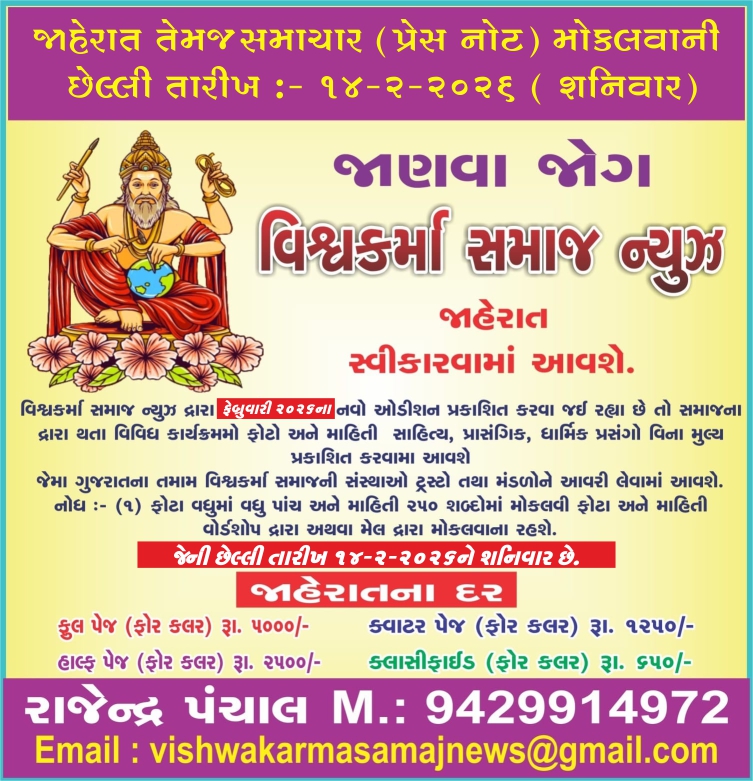 ๐Ÿ“ง vishwakarmasamajnews@gmail.com